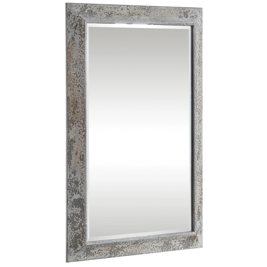 This Mirror Showcases A Rustic Casual Style. The Aged Silver Frame Features An Antique Ivory Wash With Rust Accents, Heavy Texture, And Distressing. The Mirror Has A Generous 1 1/4″ Bevel And May Be Hung Horizontal Or Vertical.