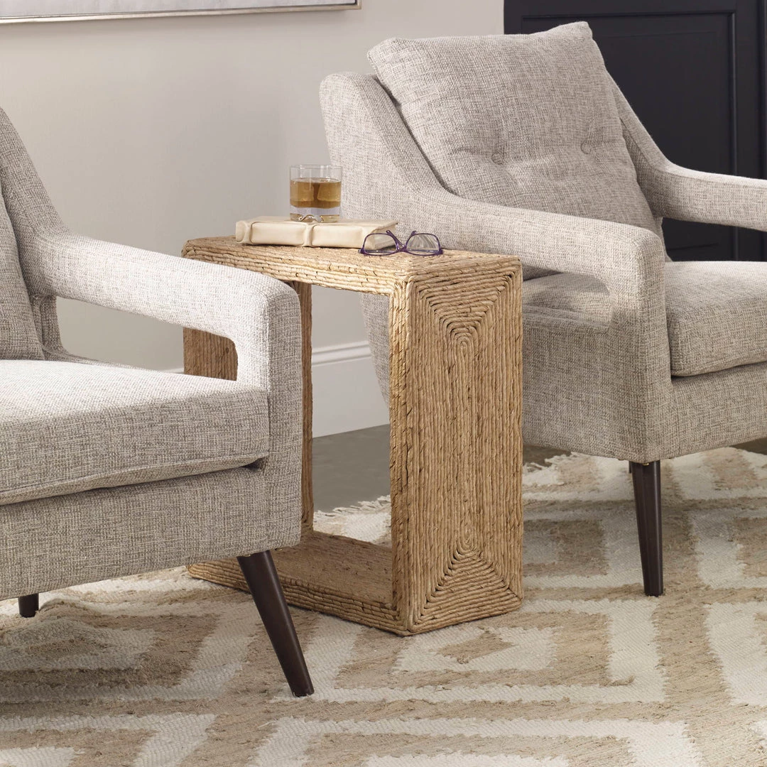 Equal Parts Relaxed And Refined, This Accent Table Embodies Casual Coastal Style. Wrapped In Natural Woven Banana Plant, Creating Unique Texture And Concentric Color Patterns. The Airy Open Center Allows For Extra Display Space.