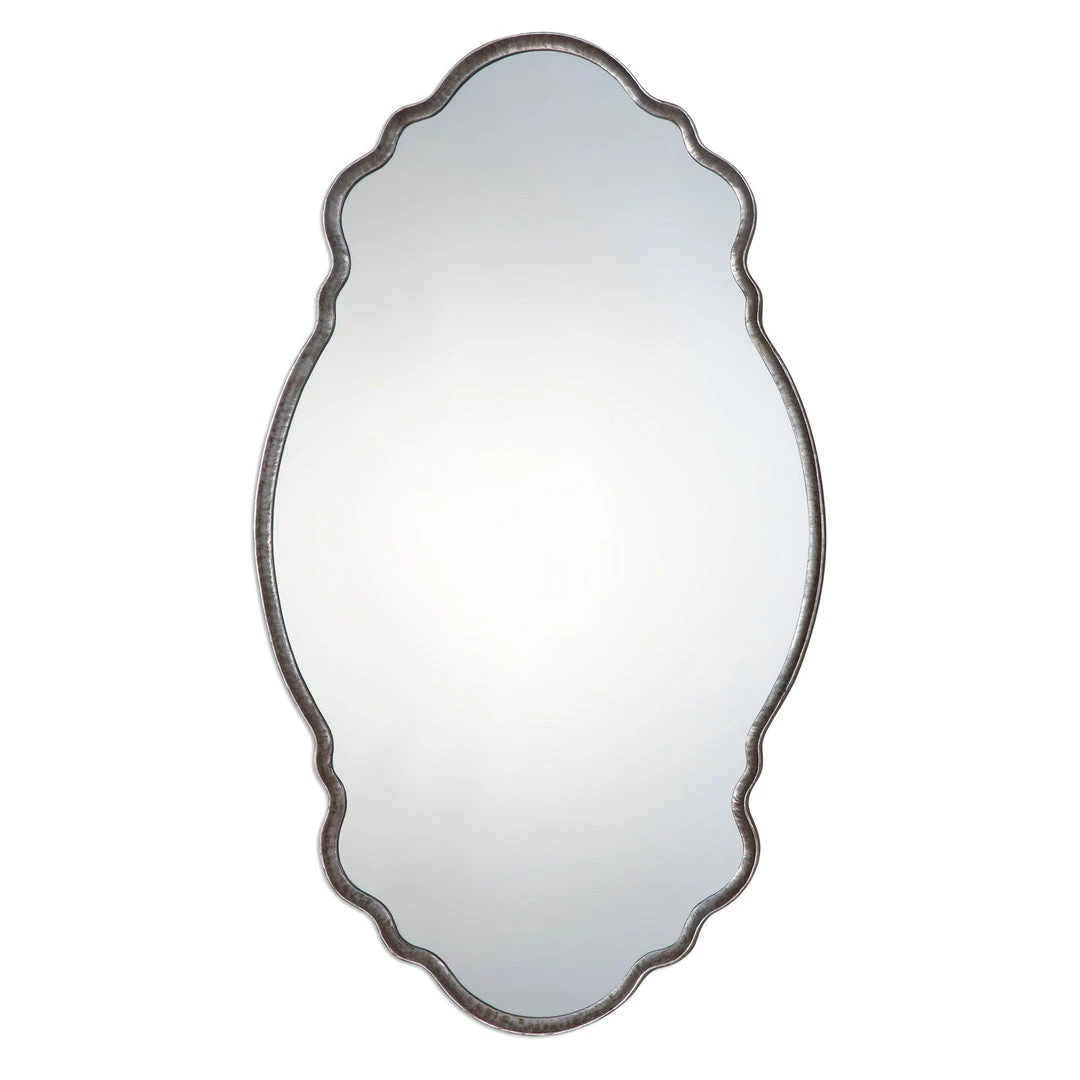 Add A Touch Of Elegant Charm To Your Room With This Versatile Mirror. The Hand Hammered, Iron Frame Has A Metallic Silver Finish With A Lightly Applied Burnished Wash. May Be Hung Horizontal Or Vertical.