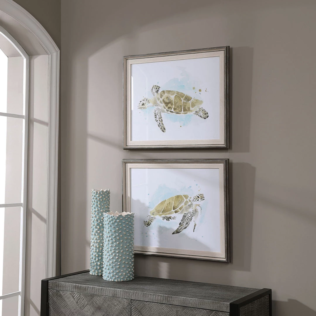 Uttermost Sea Turtle Study Watercolor Prints, S/2