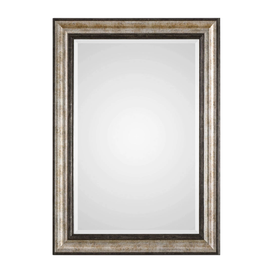 Sharply Sloped Design With A Nicely Curved Outer Edge, Finished In A Two-tone Antiqued Metallic Silver And Rustic Dark Bronze. Mirror Is Beveled And May Be Hung Horizontal Or Vertical.