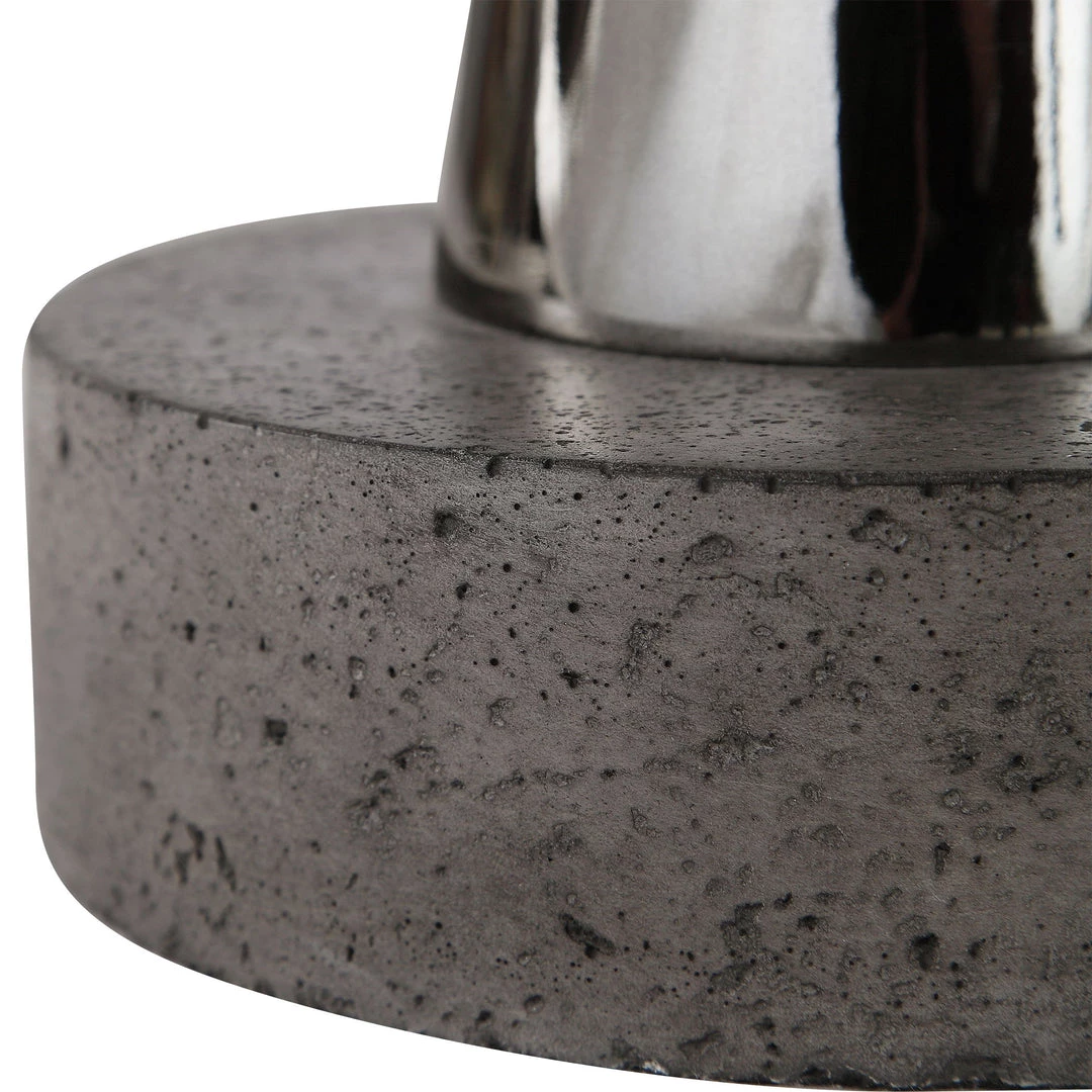 Mixed Media Styling, Featuring A Sleek Black Nickel Finished Base, Complete With An Aged Concrete Top And Foot With Strapping Details And Crystal Accents.