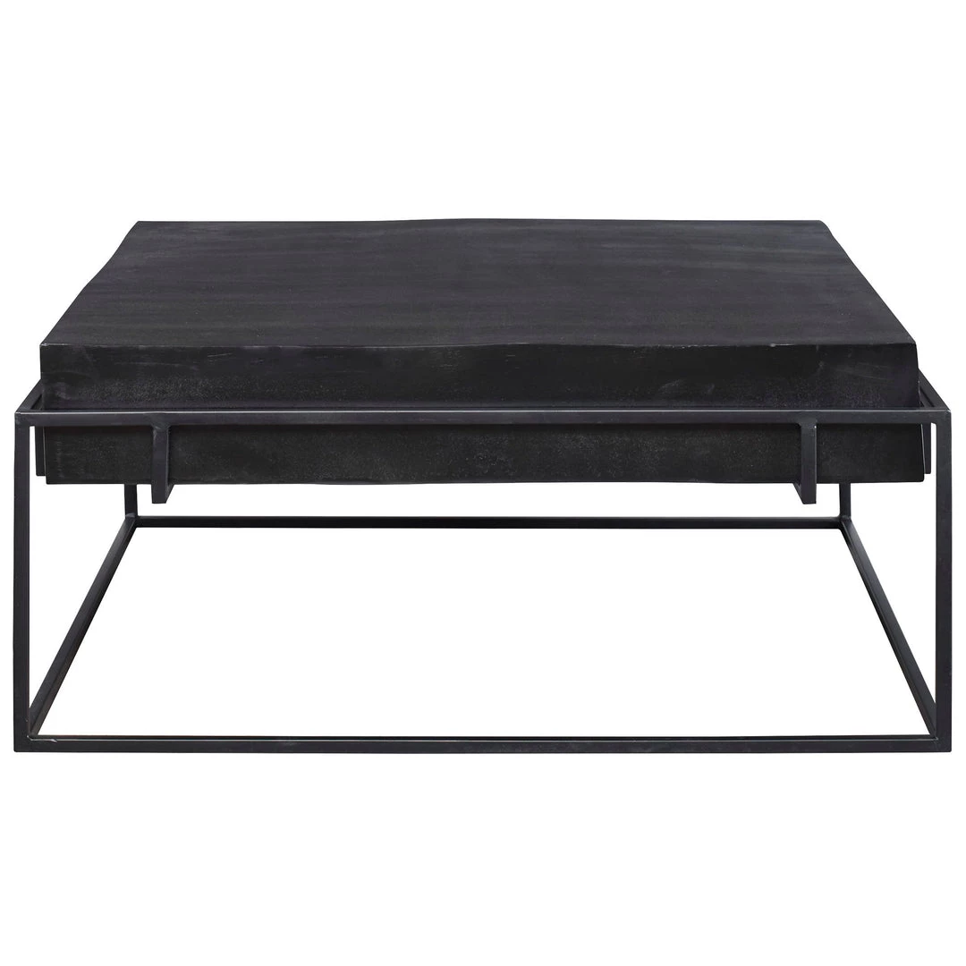 With Modern Minimalist Styling, This Coffee Table Features A Thick Cast Aluminum Top With Natural Texturing Finished In A Plated Antique Black, Resting In A Coordinating Aged Black Iron Base.