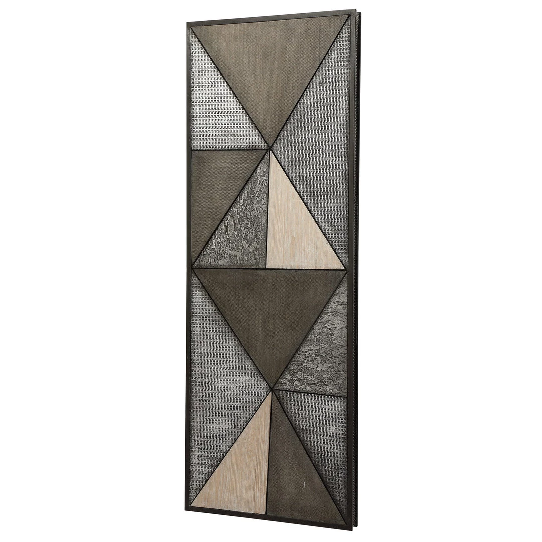A Nod To Contemporary Bohemian Style, This Wall Panel Features A Collected Look With Mixed Neutrals And Textures That Create A Unique Focal Point. The Triangular Motifs Are Finished In Whitewashed, Distressed Silver And Charcoal Tones. A Matte Black Iron Frame Complements This Design. Hang Multiples Together Horizontally Or Vertically, Enabling A Truly Unique Wall Display.