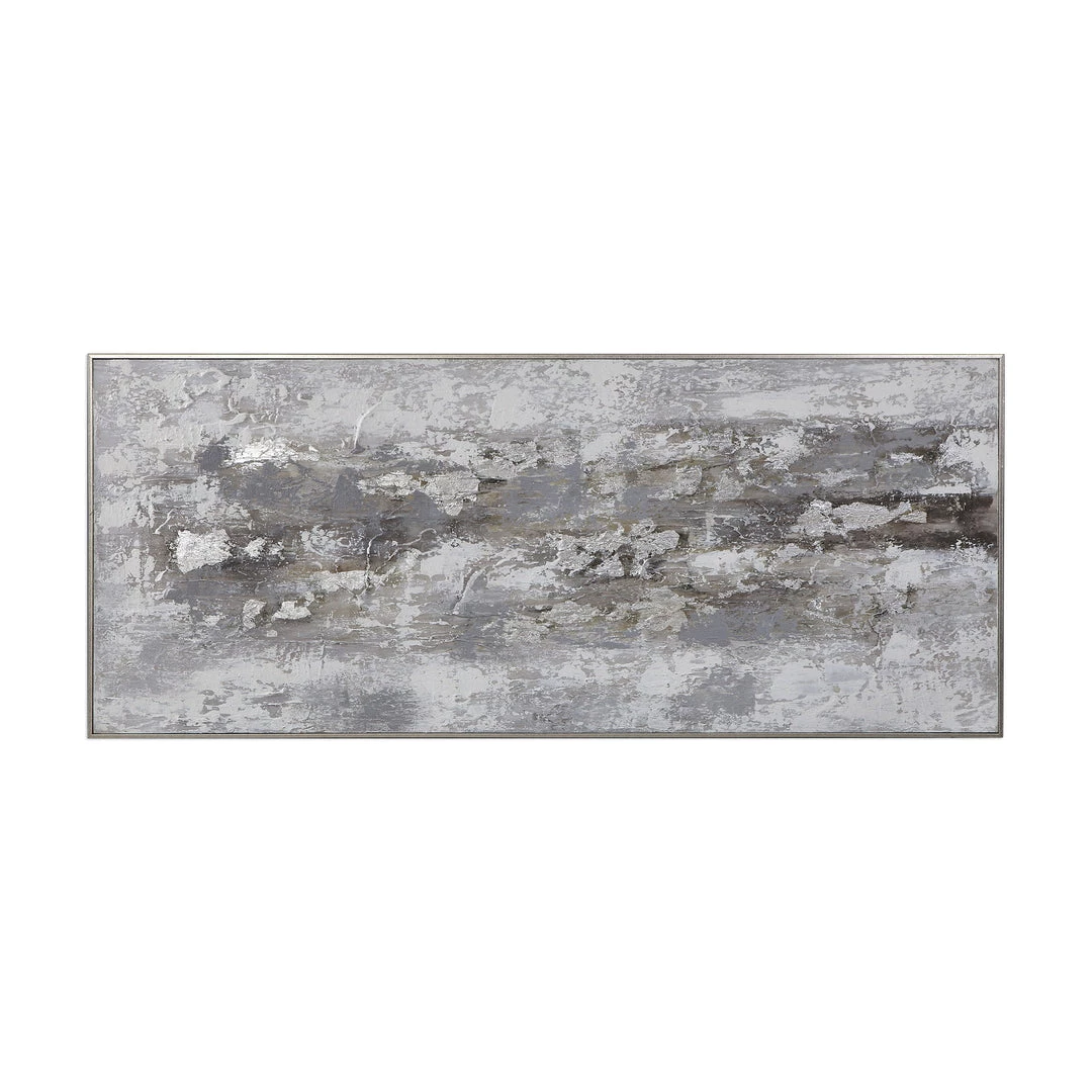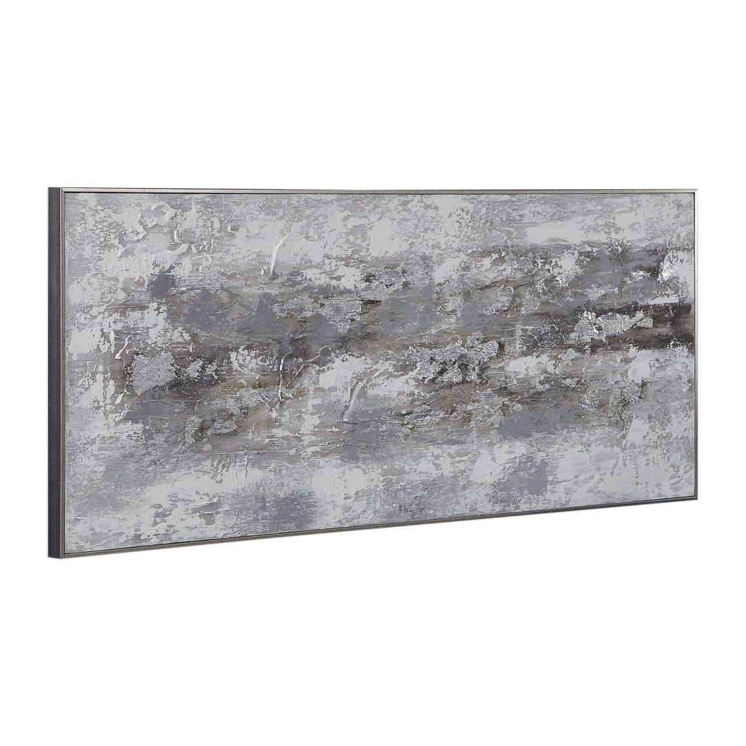 Modern, Industrial Style Can Be Found In This Hand Painted Abstract On Canvas. Various Shades Of Warm And Cool Gray Are Accented By White And Silver Leaf Accents In A Heavily Textured Finish. A Textured Silver Leaf Gallery Frame Completes This Piece. Due To The Handcrafted Nature Of This Artwork, Each Piece May Have Subtle Differences. This Piece May Be Hung Horizontal Or Vertical.